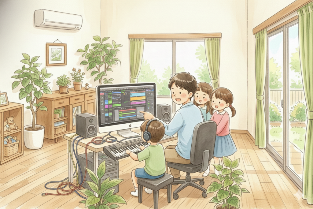 「楽器は習っていないけれど、音楽が好き」 「ゲーム音楽やYouTubeのBGMを自分で作ってみたい」 「パソコンを使って、何か形に残るものを作らせたい」そんなお子様にぴったりのコースです。現役の作曲家が、一人ひとりの感性に寄り添い、音楽の基礎からパソコン操作まで丁寧にサポートします。ピアノ教室という安心の環境で、お子様の新しい才能を一緒に伸ばしてみませんか?